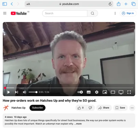 Hatches Up does lots of unique things specifically for street food businesses, the way our pre-order system works is possibly the most important. Watch an unkempt man explain why.